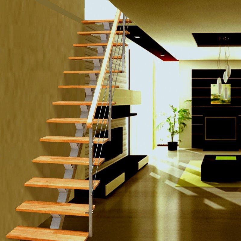 Facile à installer.Limon central métallique thermo laqué, marches hêtre massif.